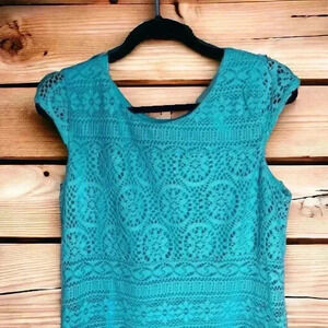 Xhilaration Women's Teal Lace Overlay Sise Large Cap-Sleeve Dress Size Large