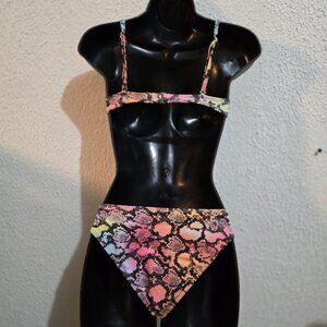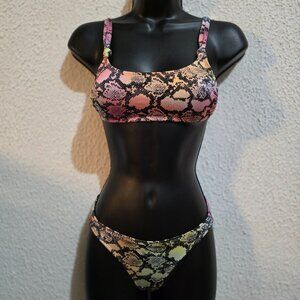 Xhilaration XS Snake Print Bikini Set Ribbed Recycled Plastic Adjustable Straps