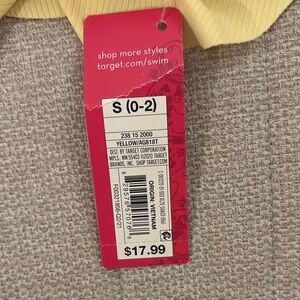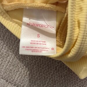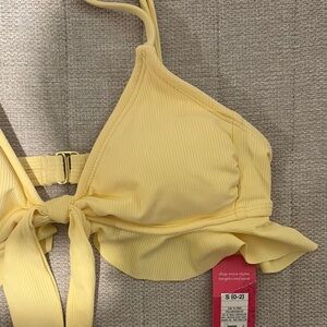Stylish yellow bikini top by Xhilaration. Features adjustable straps and front tie detail.