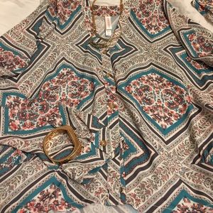 Women's/juniors xhilaration size M blouse. Buttons up the front, but I never personally wore it that way. Super cute with navy pants or skirt!