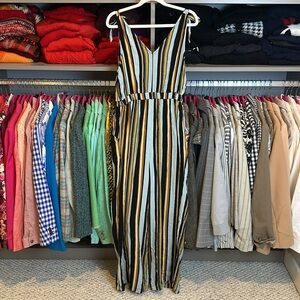 Xhilaration blue/black/brown striped sleeveless button front jumpsuit size S
