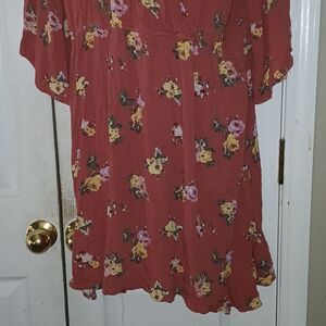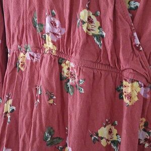 Xhilaration dusty mauve floral print faux wrap mini dress Sz XXL EUC