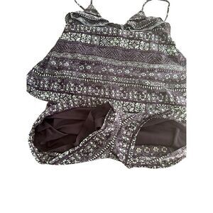Gorgeous navy blue jumpsuit sleeveless dress size small. It features a V-neckline, a keyhole opening at the back, and a drawstring waist.