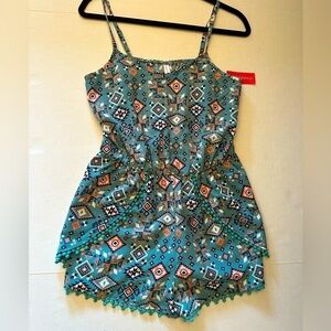 Xhilaration multi color light weight romper with trim detail Sz M NWT. K13