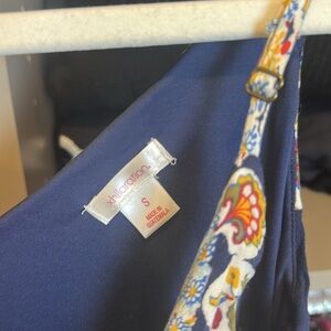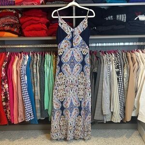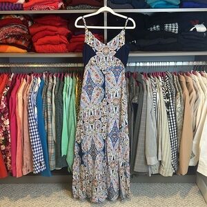 Xhilaration navy/multicolor print adjustable strap lined maxi dress size S