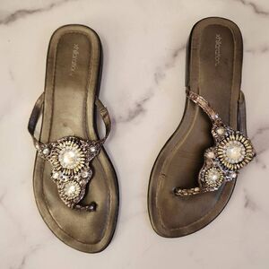 Xhilaration women's silver sequin beaded rhinestone sandal size 8