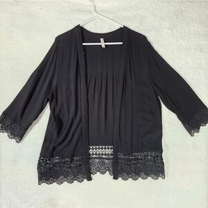 Xhilaration Black Lace Trim Open Front Cardigan – Size Large