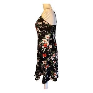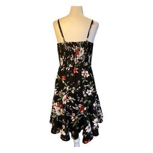 Xhilaration Floral Print Mini Dress Black Red White Square Neck Strappy Ruffle M
