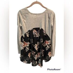 Xhilaration Gray Floral Long Sleeve Dress Shirt XSmall.