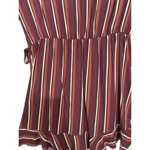 Fun and Flirty flattering stripe ruffle hem mock wrap dress with side string tie