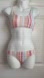 Bikini bottom has vertical stripes in soft hues of taupe, dusty rose, light blue, rose pink, clay , peach and white.
