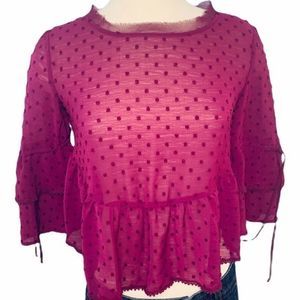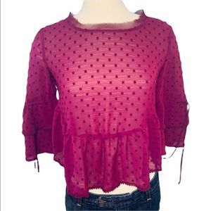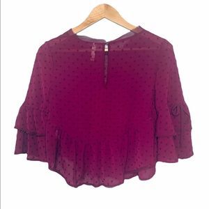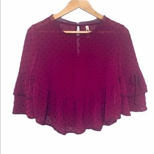 Xhilaration Sheer Crop Blouse Bell Sleeve Peplum