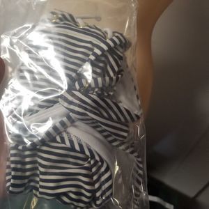Xhilaration Striped Nautical Lace Tie Up Swim Bra Top cropped Stretch size XLIt can be worn a halter top! Blue and whitePreowned excellent condition