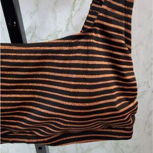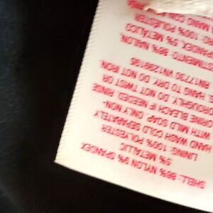 Size 24W, 39 inches around bottom (elastic), nylon/spandex/metallic. Good barely worn condition.