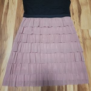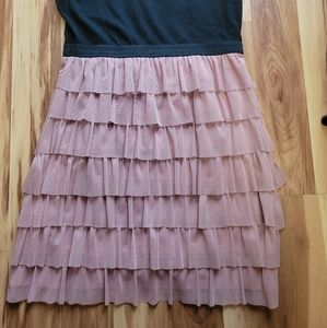 Xhilerarion ruffle dress, top is pretty stretchy, bottom is lined and top layer kind of looks like tulle. Size L, very good condition. Really cute dress!