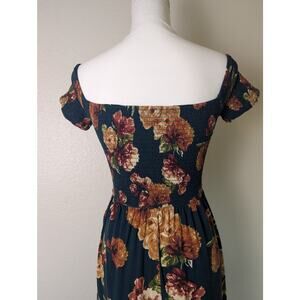 Xhileration Smocked Off The Shoulder Floral Green Maxi Dress Women S Bloomcore