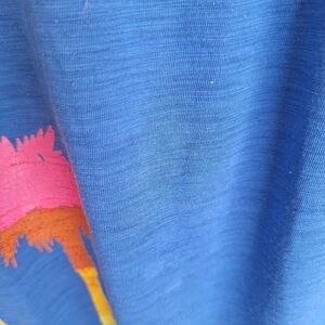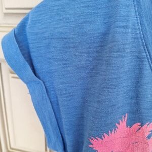 Xhileration Tropical Tee SzXS Rolled Short Sleeve Blue/Pink Palms V Neck Cutie