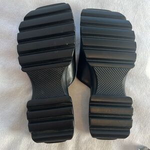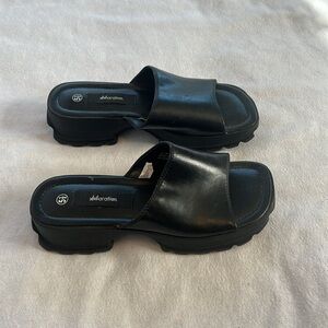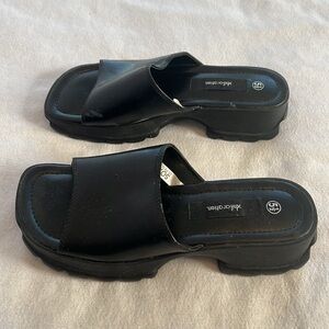 ⭐️ Xhileration black faux leather chunky treaded bottom slide on women size 5.5