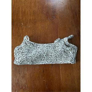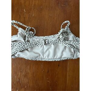 Xhileration Size medium, off-white/cream with black polka-dotted bikini top, wire on sides, fits a little more like a size small, lots of life left