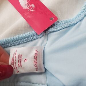NWT Xhileration. light blue, ribbed, cut out bust, bikini top. Size xl