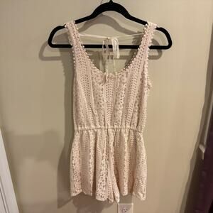 Xhiliaration Boho Floral Lace & Embroidered Cream Romper Size Small