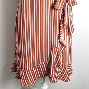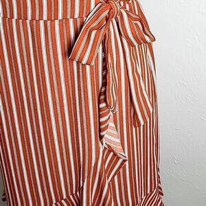 Xhiliaration Rust/White Stripe Dress, Spaghetti Straps, Ruffles, Side Tie, Sz M