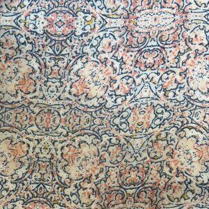 Abstract boho print in shades of coral, blue and soft yellow on cream