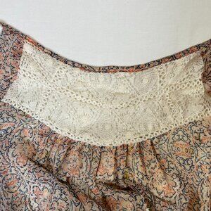 Xhiliaration Size L Floral Boho Mini Dress Cold Shoulder Cut Out Sheer Sleeves