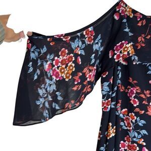 Xhiliration 3X Pink Blue Floral Cold Shoulder Ruffle Adj Strap Midi Dress Summer