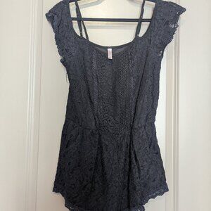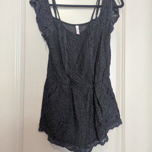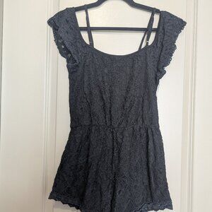 Xhiliration Black Lace Cotton Romper Size Medium