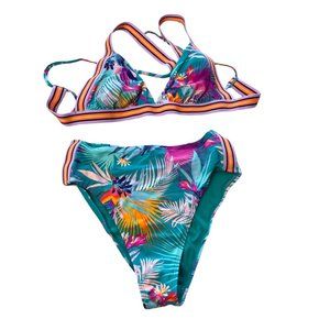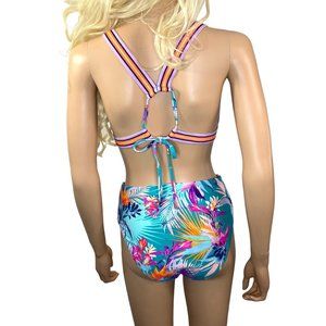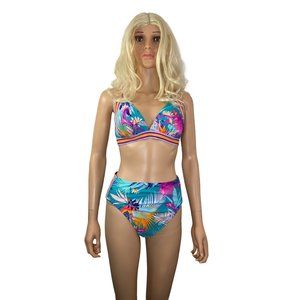 Xhiliration Floral Tropical Bikini Set Top XL + High Waisted Bottoms M