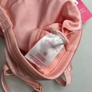Dive into summer with this Xhilaration Metallic Twist Front Bikini Top, a dazzling addition to your swimwear collection. This bikini top comes in a captivating metallic orange/pink shade that's sure to stand out by the pool or at the beach. The twist front design adds a touch of flair, while the adjustable straps ensure a comfortable and secure fit. Designed for the fashion-forward woman, this size 00 bikini top from Xhilaration offers a blend of style and function. Whether you're lounging on a sunny day or enjoying a beachside getaway, this swim top is an essential piece for those warm, warrantable moments. It is brand new with tags!