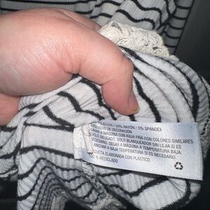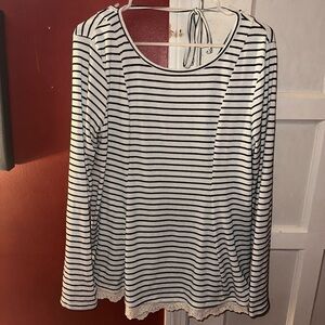 Xhiliration Scoopneck Lace Long Sleeve Striped Shirt with Low Back Tie