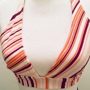 Xhiliration White, Pink, Magenta, and Orange Striped Halter Bikini Top