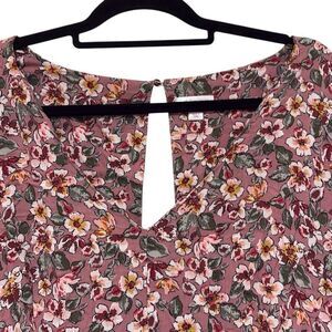 Xhiliration XXL Pink Floral V Neck Romper Keyhole Back Twist Cutout Sleeves