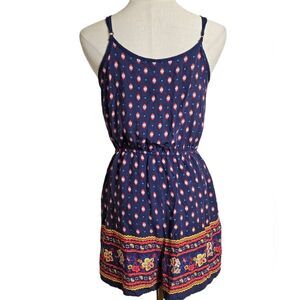Xhiliration Y2K Navy Floral Boho Print Romper