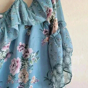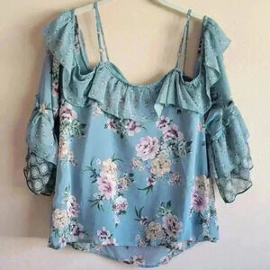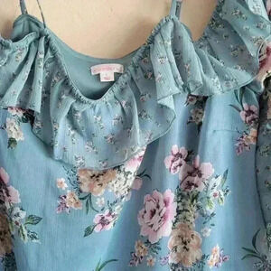 Xhiliration floral print cold shoulder ruffle blouse size large