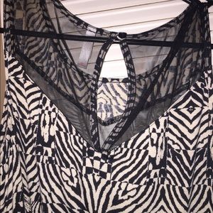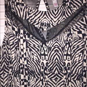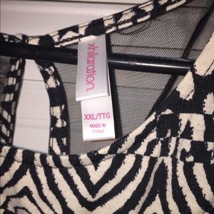 Women’s Xhiliration dress from Target, size XXL. Black and white, a-line, knee length. Slight mesh/see through strip just above chest, small keyhole back. Comfortable material, very flowy. Never worn, no tags.