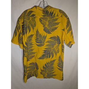 Xi Deng Yellow Mens Hawaiian Print Short Sleeve Button Up Sz Large Fern Resort. Shirt is in excellent condition.