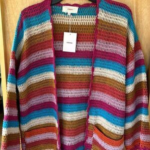 XiRENA Arlet Dream State long sleeve midi crochet cardigan cotton stripes XS