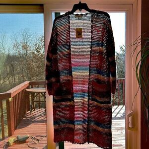 New XiRENA Spanish Arlet Dream State long bell statement sleeves midi crocheted cotton cardigan pockets stripes XS