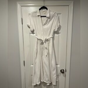 XiRENA Caylin White Gauze Belted Shirt Dress