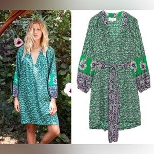 XiRENA Hart Green Tie Waist Dress in Intro Vert Size XS