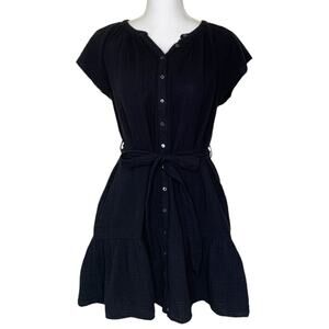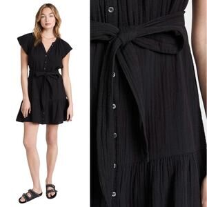 XiRENA Jude Black Gauze Cotton Belted Button Front Mini Dress. This XIRENA Jude Dress is crafted from mid-weight, non-stretch weave fabric. It features a round neck, flutter sleeves, a button placket, self-belt at the waist, and on-seam side pockets. The shell is made of 100% cotton and is unlined. Made in the USA. This dress is one of those versatile pieces you'll want to turn to time and time again. Simple sneakers and strappy sandals are the natural pairing for this breezy mini. All photos except for modeled shots are of the actual item. Size S. Great condition, minor wear on fabric. Measurements (approximate): PTP 23", length from shoulder 33". This style originally retailed for $276 and is no longer available. Tags: shirt dress, button down dress, relaxed fit, effortless style, minimalist look, everyday dress, casual chic, weekend style, work to weekend, elevated basics, collared dress, short sleeve dress, tiered dress, midi dress, soft fabric, breathable material, boho vibes, California cool, luxury casual, loungewear upgrade, travel friendly, work from home style.