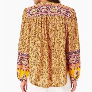 Chic floral blouse with button-up front. Long sleeves with vibrant cuffs. Perfect for any occasion.
