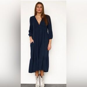 XiRENA North Star Ella Cotton Gauze V-neck Boho Pockets Midi Dress M