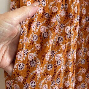 100% cotton print pants in a cute ditsy floral print. Rust, burgundy and white.