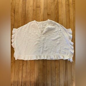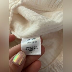 Size small cotton Remy blouse from Xirena. Gauze like material with ruffled extra fabric around the sleeves for a breezy neutral but cottagecore look. Check out the pictures for measurements!