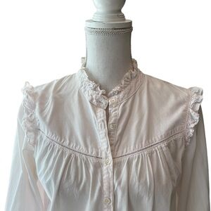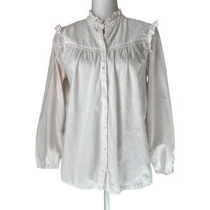 XIRENA Women’s chic white blouse with delicate ruffles. Button-down front. Perfect for versatile styling.