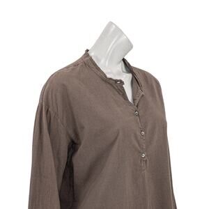 XiRENA Women's 1/2 Button Popover Blouse in Brown/gray cotton Medium